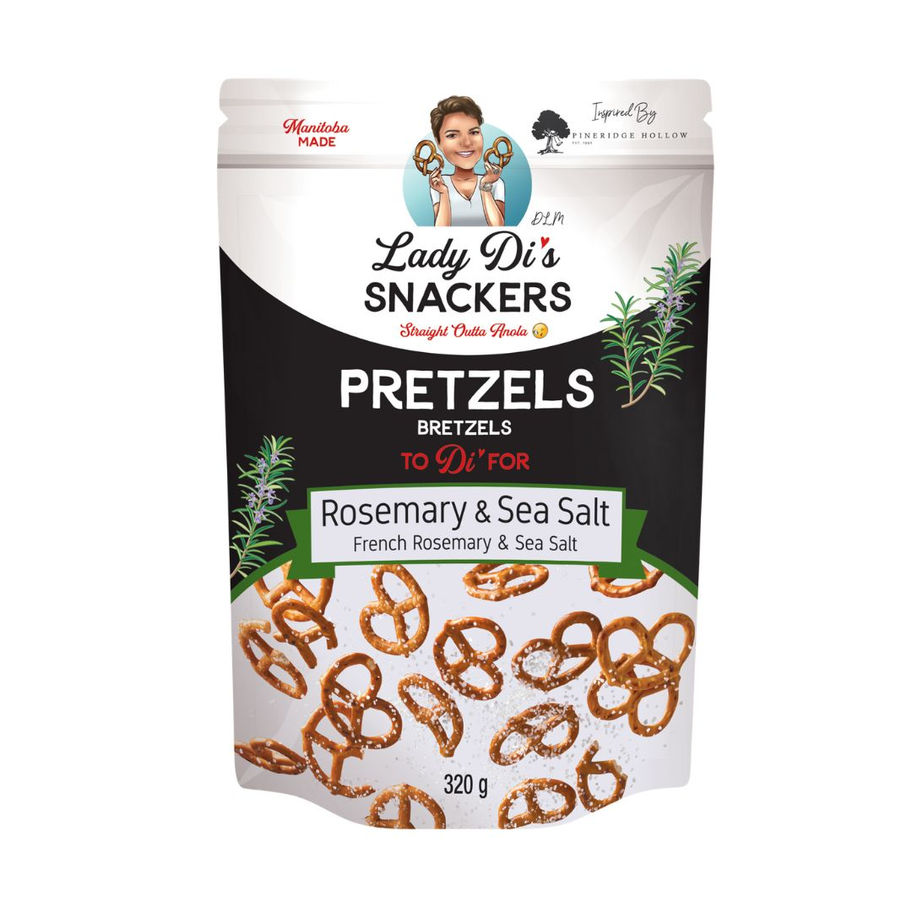Pretzel twists (enriched flour, salt, soybean oil, sugars [glucose, barley malt extract], yeast and/or sodium bicarbonate and/or ammonium bicarbonate, sodium hydroxide), Canola oil, Ground rosemary, Sea Salt.